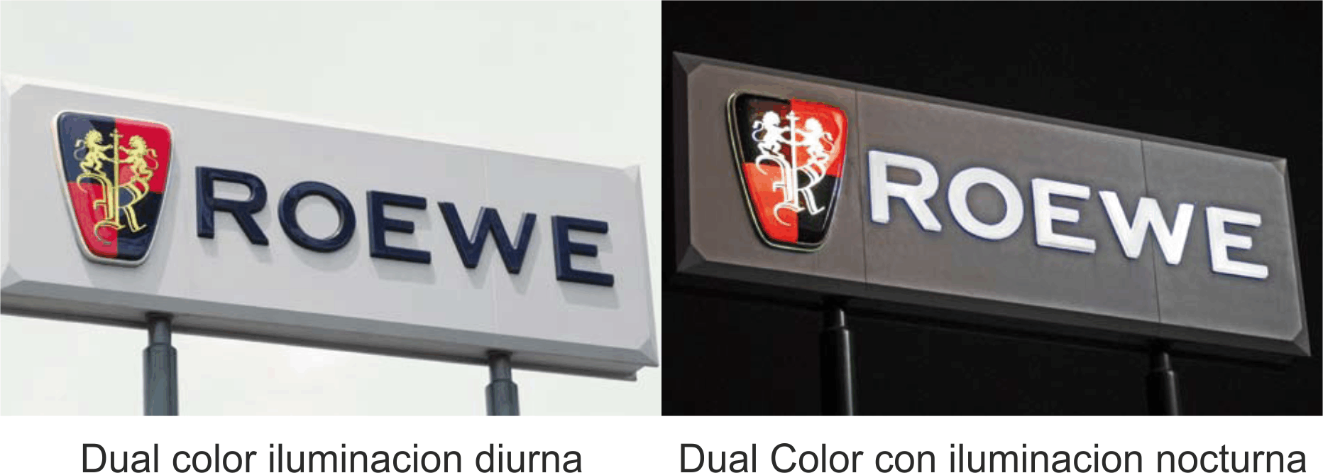 Dual ColorACRYLITE Dual Color se emplea en aplicaciones publicitarias luminosas especiales. Bajo la luz diurna natural su aspecto es el de una plancha de color convencional sin iluminación. Pero al retroiluminarse durante la noche, el rótulo se transforma y brilla con fuerza e intensidad.